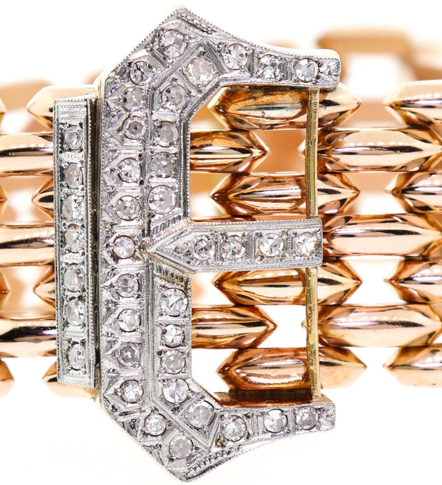 18k Gold, 1.50ct diamond Two tone Flower design bangle